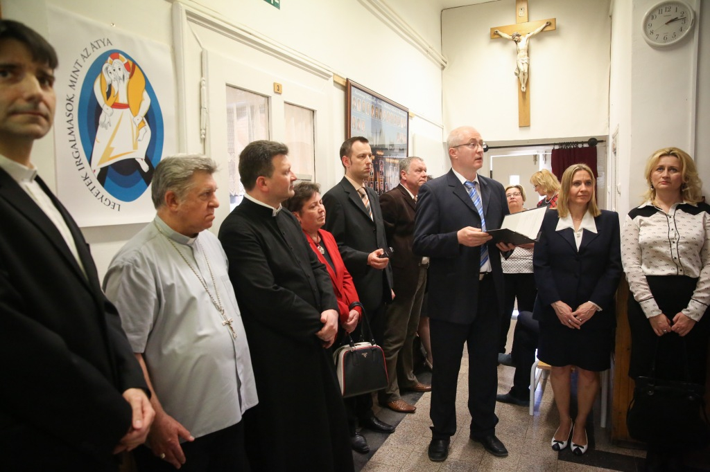 Az intézmény története 25 évét kiállításban dokumentálta, és az iskola falán emléktáblát helyeztek el az épületben, amit Snell György, az Esztergom-Budapesti Főegyházmegye segédpüspöke áldott meg. „Ősidők óta fontos az ember számára életének megörökítése. A múlt jelzésszerű megjelenítése tartja meg az emberek emlékezetében az ősök számára fontos eseményeket. Ennek szellemében helyezzük el most is az emléktáblát. Bár 25 év mindössze egy pont az emberiség történetében, de egy intézmény életében a hőskor. A jubileumot ünnepelve meg kell állni, hálát adni Istennek a 25 évért – ennek szellemében kérem Isten áldását az intézmény és a benne dolgozók életére. Imádkozzunk a mustármagból fává növekedett iskola további kibontakozásáért” – buzdított Snell György.