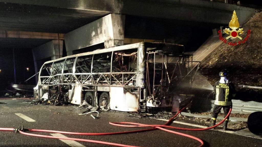 Egy hős fiatal holttestét is megtalálták később a buszban: az olasz rendőrök szerint még ekkor is kezében szorította az ablakok kitörésére használt kalapácsot, amiből arra következtetnek, hogy miután kitörte az üveget, előbb másokat segített ki, és így már nem maradt ideje arra, hogy magát is mentse.