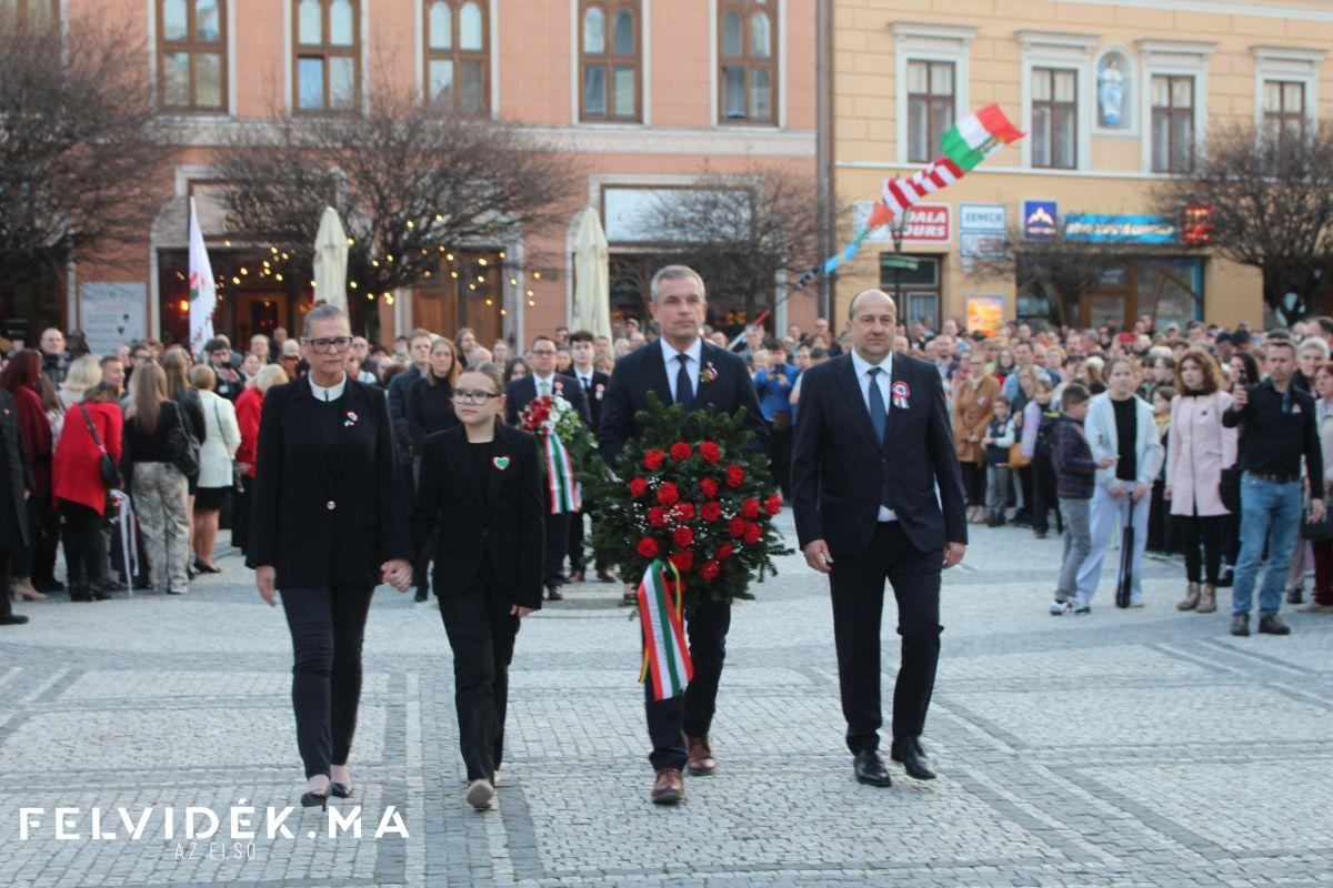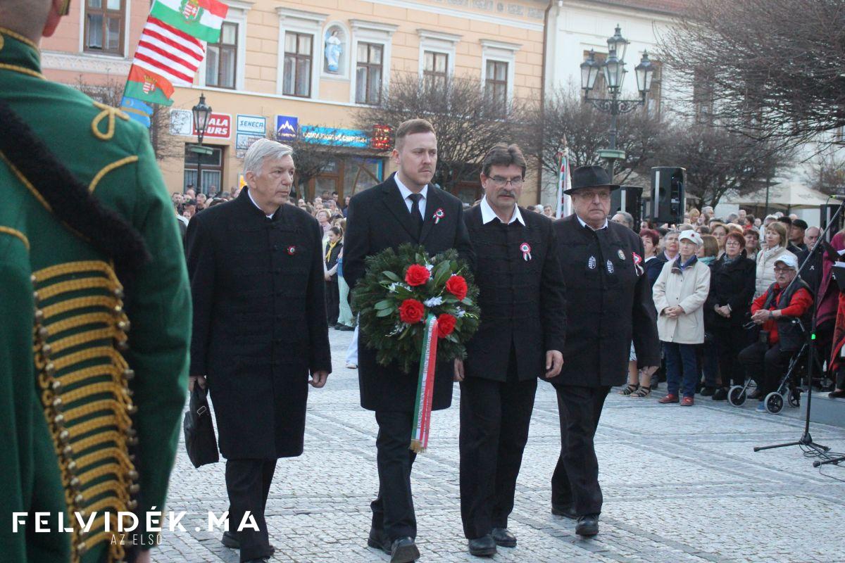 A politikus szerint ezekre a kihívásokra csak úgy lehet választ adni, ha a közösség tagjai képesek lesznek a márciusi ifjak példáját követve „emberből hőssé válni”. Kiemelte: a történelem azt mutatja, hogy a magyar közösség a legnehezebb időkben is meg tudta őrizni tartását. Ezzel kapcsolatban a komáromi példát idézte fel. Emlékeztetett: 1848 őszétől 1849 őszéig a város a szabadságharc egyik legfontosabb bástyája volt. „Amikor már Világosnál letették a fegyvert, Klapkáék még mindig a magyar szabadságért küzdöttek” – emelte ki, hozzátéve: a vár védői végül emelt fővel, tisztességes feltételek mellett hagyták el a várost. „Valahogy ezt a tartást, ezt a makacsságot és ezt a kitartást kell nekünk is elsajátítanunk” – húzta alá.