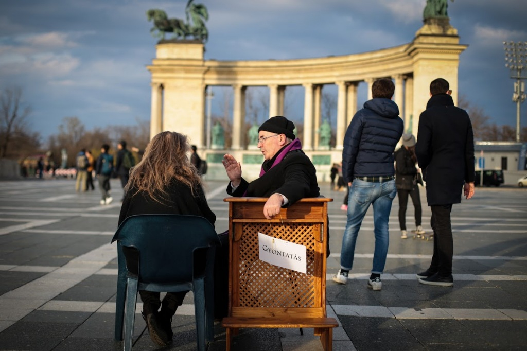 Michael Duffy atya, a Krisztus Légiója rend másik tagja a keresztúton és az azt követő szentmise alatt is folyamatosan gyóntatott.