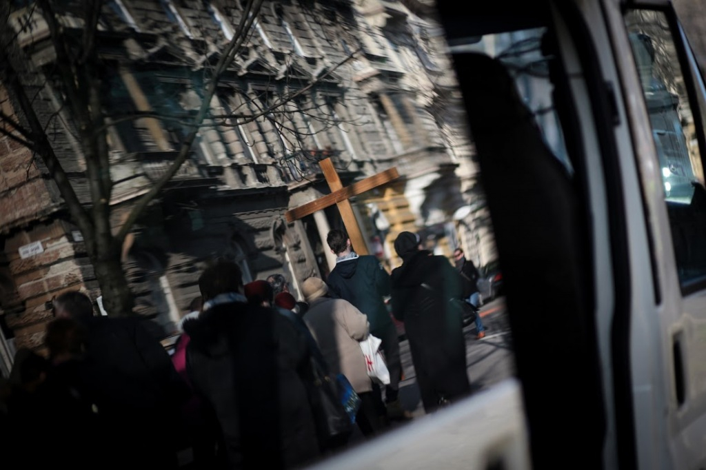 A keresztútjárók, ahogy a gyalogos és buszos turisták között imádkozva haladtak a keresztet követően, kicsit megérezhették, mennyire kilógott a tömegből a jeruzsálemi Via Dolorosán végigvonuló, keresztjét cipelő Krisztus. A keresztút nem feltétlenül csak őket érintette meg: egy padon ülő férfi el is sírta magát, amikor a Jézus haláláról szóló 12. állomást imádkozták.