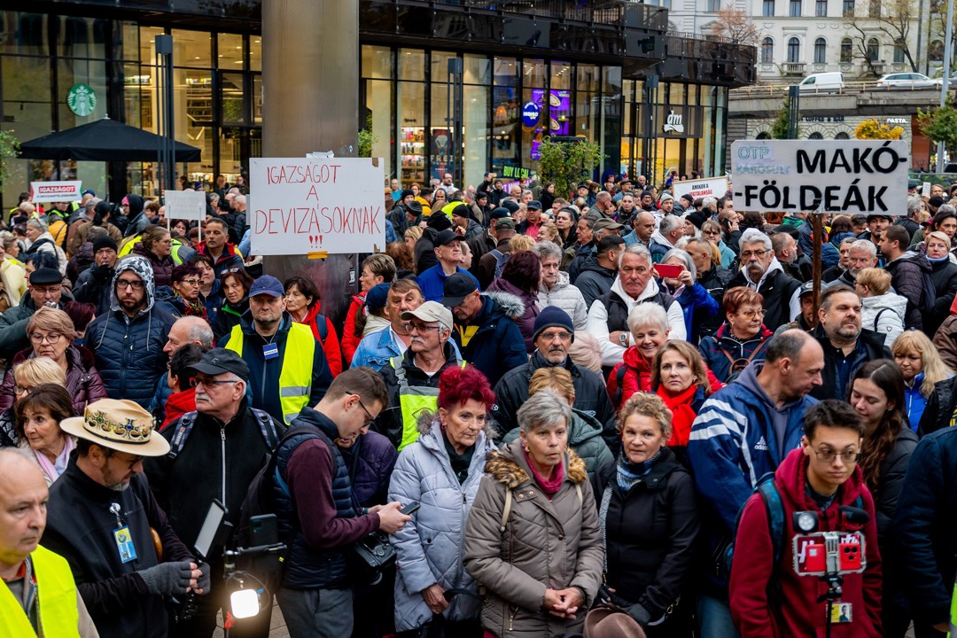 Lángolt a Bank Center előtti tér a devizakárosultak fáklyáitól
