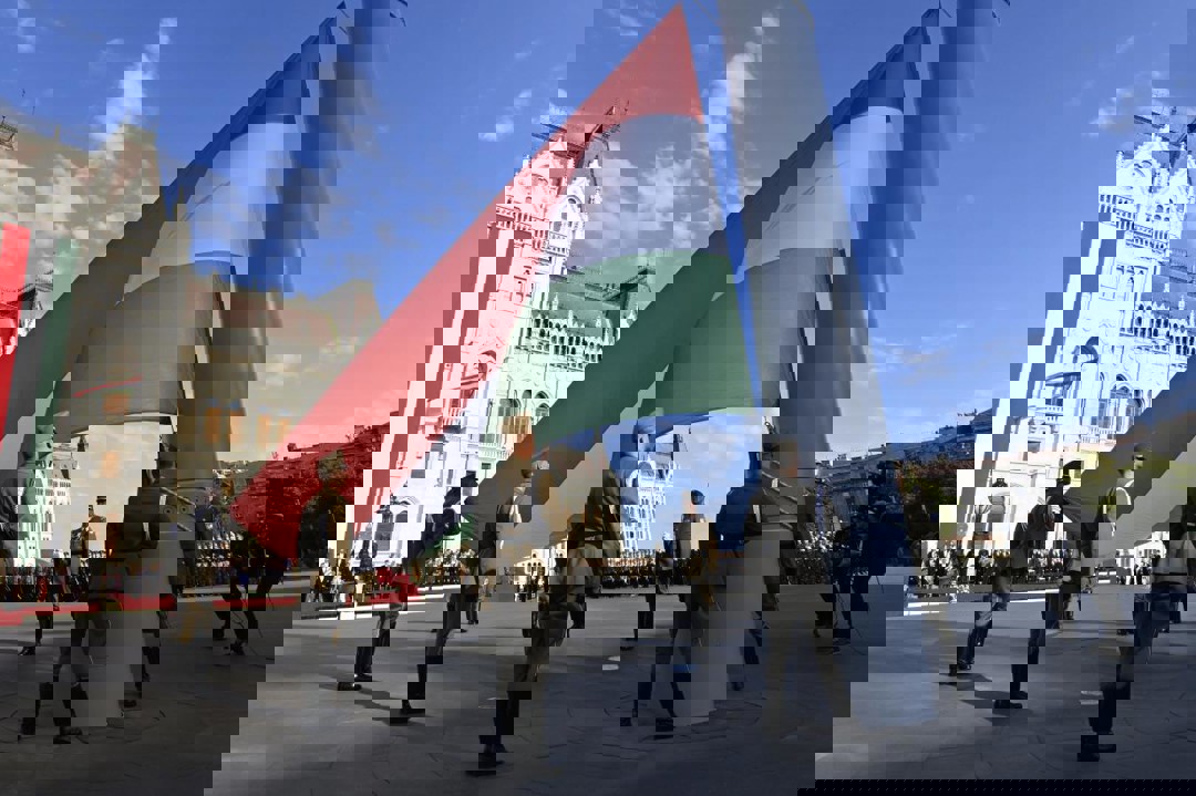 Már szárnyal a nemzeti lobogó a Kossuth téren