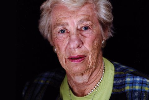 Eva Schloss ábrázatát inkább a hatezer év keserűsége, mint az auschwitzi rekreációs központ vendégszeretete szántotta fel